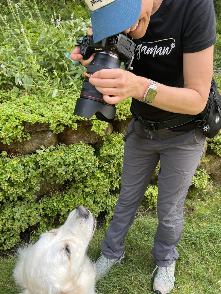 4. GETTING USED TO THE EQUIPMENT: Another tip is to help your dog get accustomed to the equipment. Depending on your dog’s comfort level with my camera, I may hold it up and immediately give them a treat as a reward. This will be repeated a few times to help them associate the camera with positive experiences. This is particularly important in a studio setting, where the lights may make unexpected flashes or pops, which can be unsettling for some dogs.