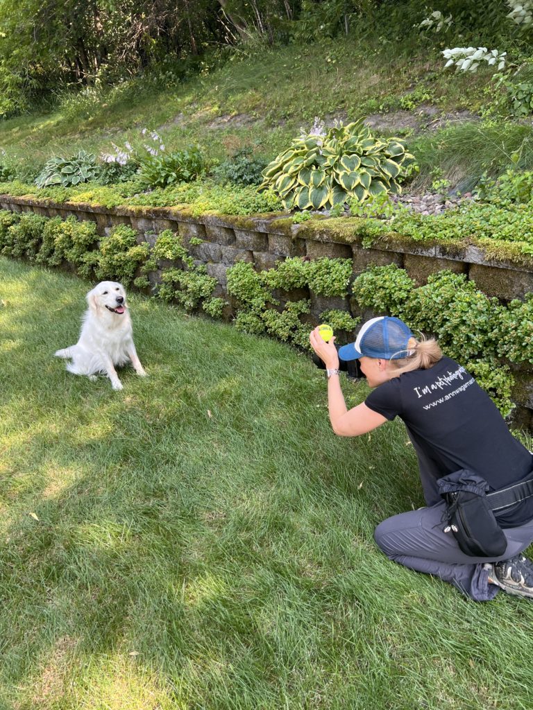 3. TREATS & BALLS! Treats and toys can also be useful during the photo session. If your dog is motivated by treats, we can use them as a reward for good behavior or to capture their attention for certain shots. For example, holding a treat just above the lens can help create an adorable “puppy dog eyes” shot. Similarly, using a ball or toy held close to the lens can also help to keep your dog’s attention. I may ask for your assistance in holding the treat or toy while I focus on keeping the camera steady.